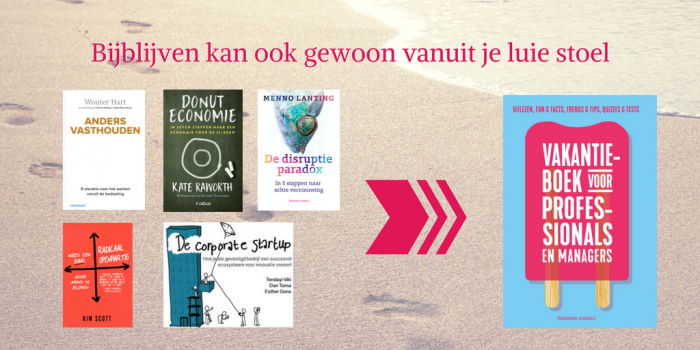 Maar goed, je hebt je handen al vol aan de dagelijkse bezigheden. Dus wat doe je dan? Je leest, lekker vanuit je luie stoel, de samenvattingen van de vijf opvallendste managementboeken van afgelopen jaar in het vakantieboek.